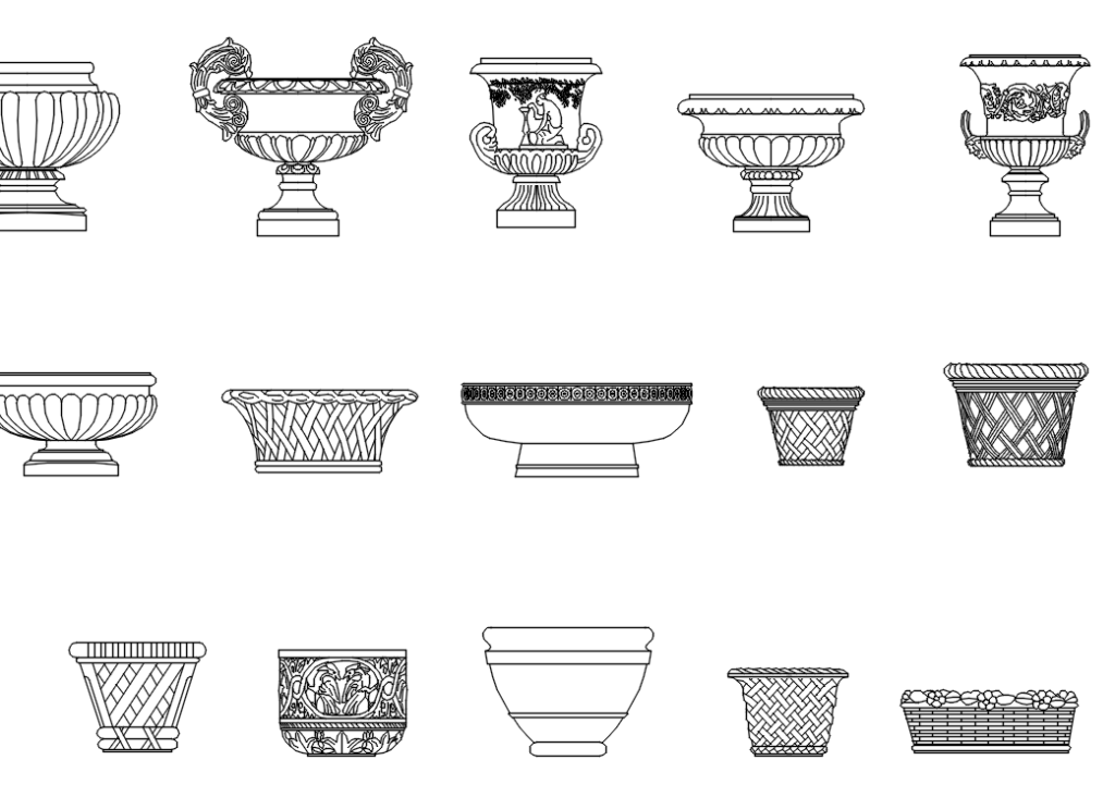 Estos bloques de urnas y jarrones en AutoCAD son perfectos para representar áreas decorativas, jardines, plazas, salas de exposición y espacios residenciales. Pueden combinarse con otros elementos arquitectónicos o mobiliarios para aportar toques de realismo y sofisticación visual. Además, los archivos son totalmente compatibles con múltiples versiones de AutoCAD, asegurando su uso sin complicaciones en cualquier entorno profesional.